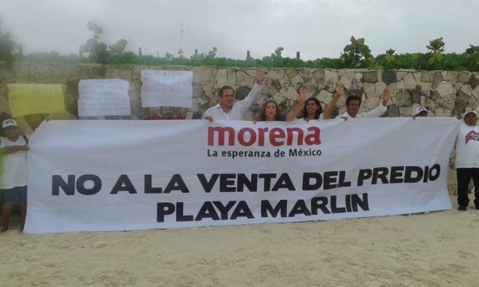 Cancún, Quintana Roo.-Sorpresa y un poco de gracia entre los cancunenses, provocó el repentino interés de militantes del Movimiento de Regeneración Nacional (Morena), incluido su vocero en el estado y senadora electa, pues ‘mágicamente’ se pronunciaron en una manifestación contra de la venta de un predio en playa Marlín, ubicada en el kilómetro 13 de la Zona Hotelera.