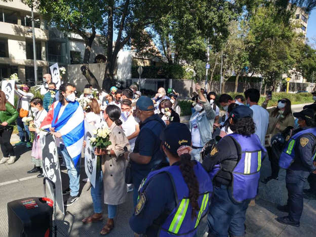 Un grupo de aproximadamente 30 personas opositoras del gobierno del presidente cubano, Miguel Díaz-Canel se manifiestan frente a la embajada de Cuba en México ubicada en la alcaldía Miguel Hidalgo.