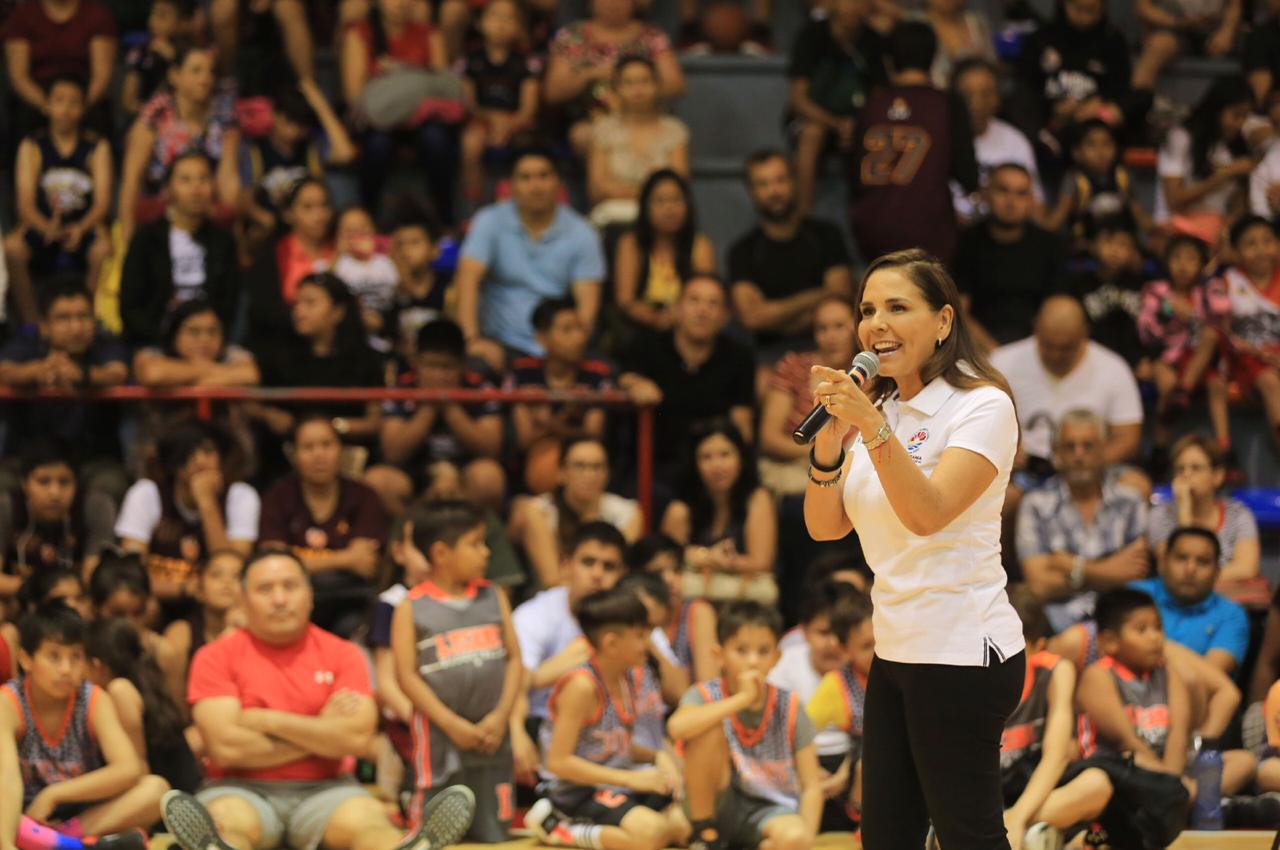 Luego de realizar un recorrido en la instalación de los trabajos realizados en las tres duelas y en el salón de usos múltiples, la Presidente Municipal lanzó el tiro inaugural para arrancar el partido amistoso de exhibición en el recinto renovado.