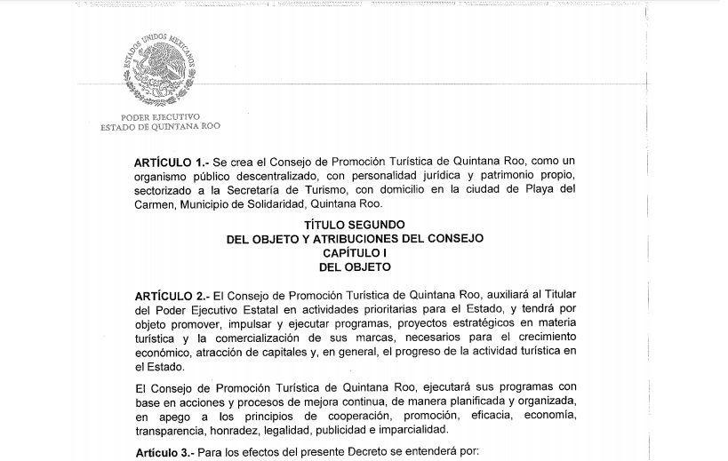 Playa del Carmen.- Este 20 de diciembre el Periódico Oficial del Estado publicó el decreto por el que se crea el Consejo de Promoción Turística de Quintana Roo, domiciliado en Playa del Carmen.