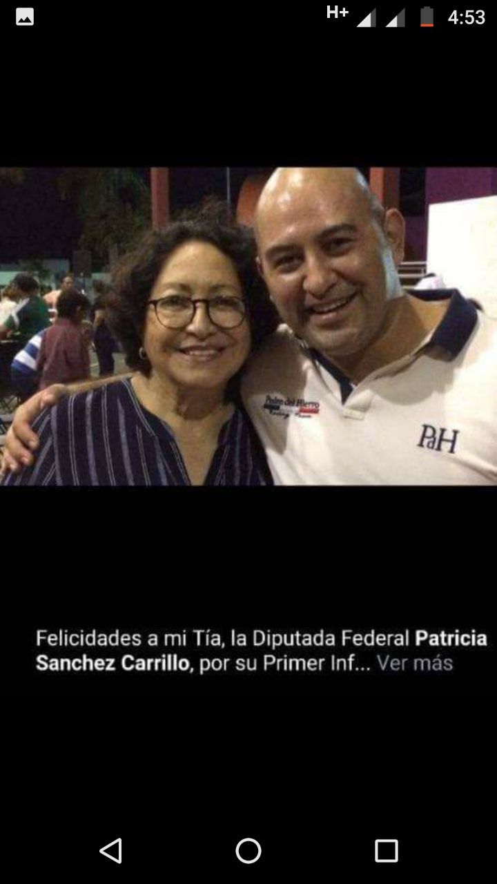 Una imagen de una cuenta de redes sociales se le muestra felicitando a su tía panista durante su primer informe de labores.