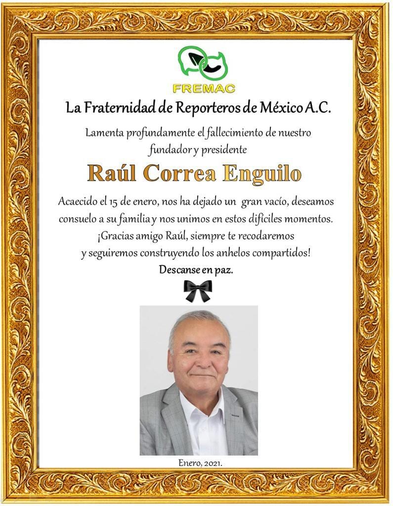 Destaca además que Correa Enguilo fue fundador de la Fraternidad de Reporteros de México.
