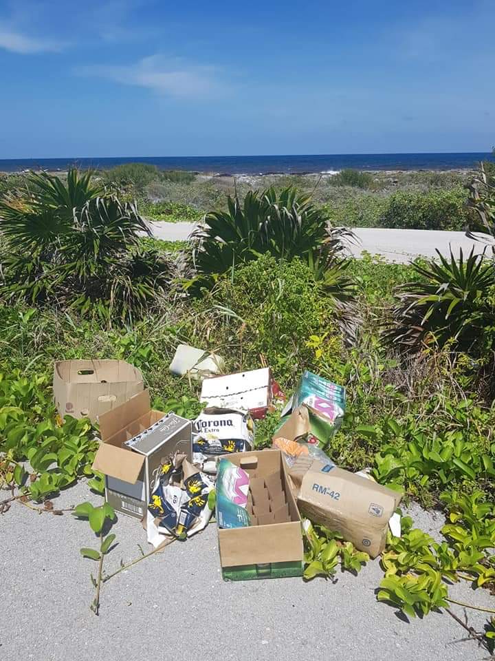 Cozumel.- Además de la presencia del sargazo en las playas del lado oriental de la isla, ahora se agregan montones de basura en distintos puntos que dejan las familias al acudir los fines de semana,  al igual que los vendedores ambulantes.