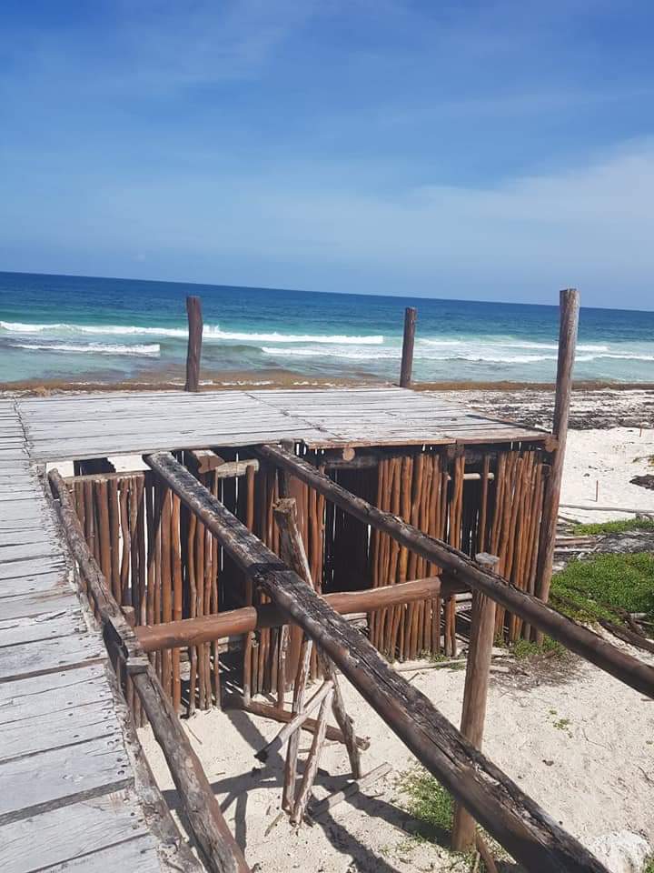 Ni siquiera se han colocado cintas o señalamientos de prohibición del paso a los miradores que están en completo deterioro y que representan un riesgo para quienes osan querer observar las playas o tomarse fotografías desde este sitio, ya que la madera está podrida por las condiciones climáticas, además no tienen los barandales, lo que puede ocasionar una caída.