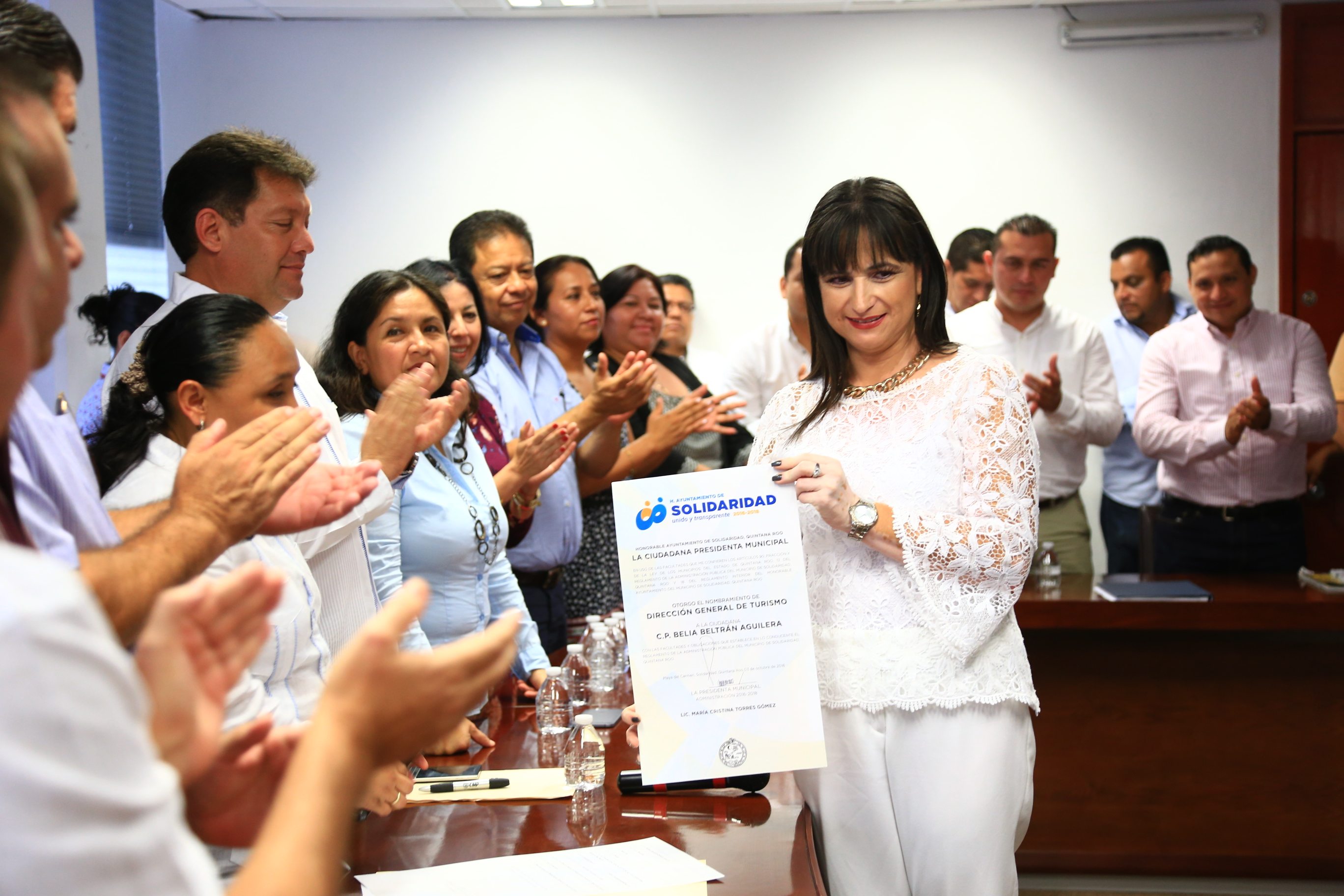 PLAYA DEL CARMEN, MX.- Con la exigencia de romper paradigmas en la imagen de los funcionarios públicos, la presidenta de Solidaridad Cristina Torres Gómez, entregó los nombramientos de los directores generales que integrarán su gabinete.