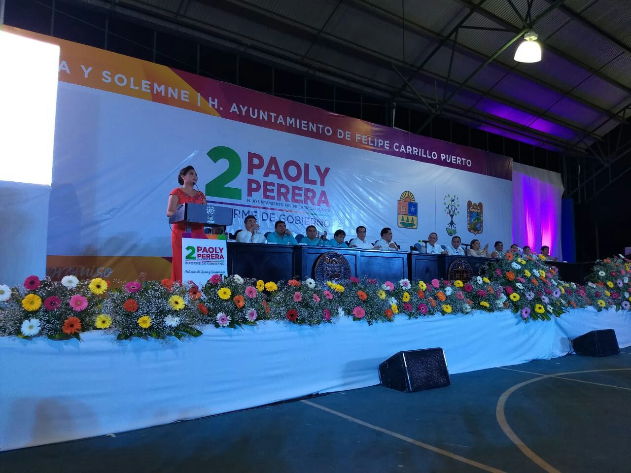 Ante el representante del gobernador del Estado, el secretario de Gobierno, Francisco López Mena, así como de invitados especiales, Paoly Perera habló de lo que su administración logró hacer en materia de salud, educación, desarrollo, seguridad, cultura y deporte, entre otros rubros.