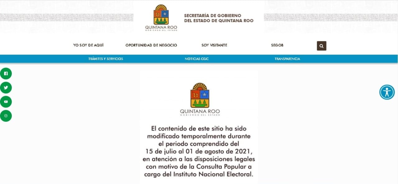 En ese contexto, las dependencias del Gobierno de Quintana Roo colocaron en sus respectivos portales de internet la siguiente leyenda: