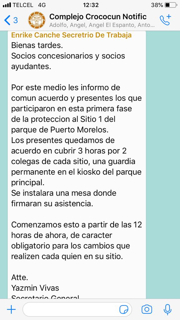 Trabajadores del volante, solicitando el anonimato, compartieron un mensaje enviado por Enrique Canché, secretario de Trabajo del sindicato, pero firmado por Yazmín Vivas Medina, secretaria general, que por medio de Whatsapp, advirtió a los agremiados que la asistencia para esta manifestación es obligatoria.