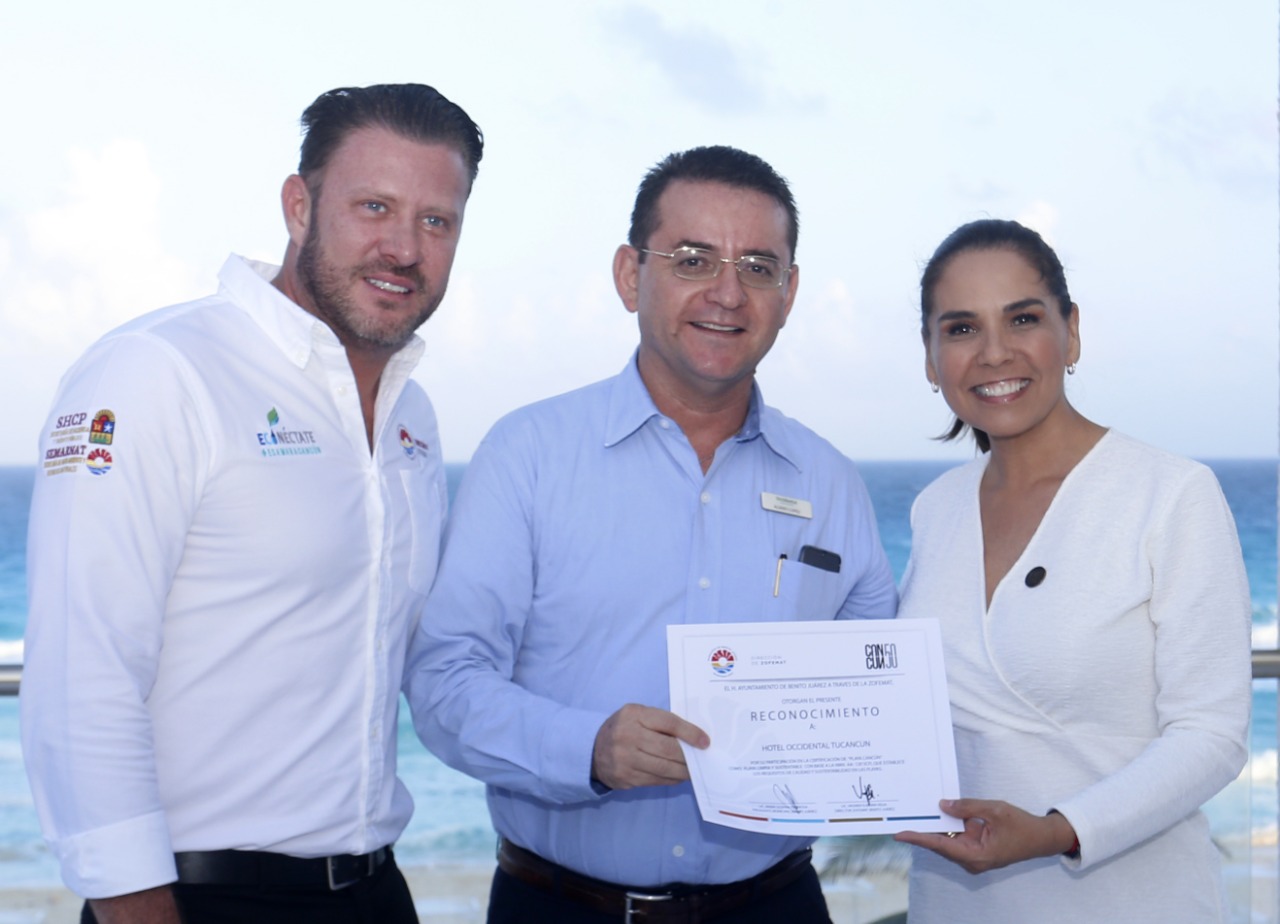 Por su parte, Viviana Fernández Camargo reconoció el esfuerzo de todas las personas, prestadores de servicios, funcionarios y demás involucrados en este logro y posteriormente hizo entrega del certificado de “Playa Limpia y Sustentable” a la Presidente Municipal, Mara Lezama, y a los representantes de los hoteles que abarcan la superficie de Playa Cancún, que se extiende entre Playa Marlín y Playa Ballenas.