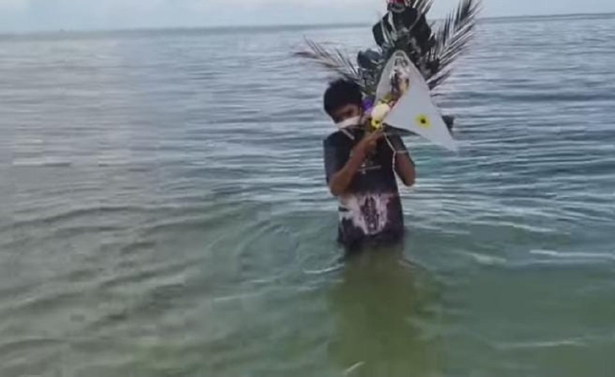 “Vengo aquí a rezarle su santísimo rosario a la playa del Arroyo de los Franceses y la voy a meter en el agua para que bendiga todas estas aguas de Ciudad del Carmen. Paraque nunca se olvide de que en estas feistas nunca se olvida nadie de ella”, dijo el niño al periodista, quien lo siguió en la peregrinación, mientras cantaba.