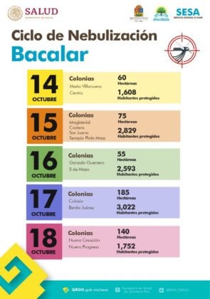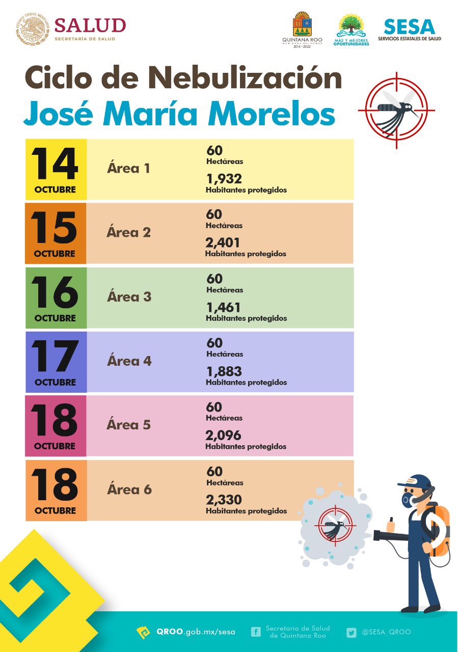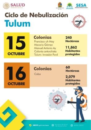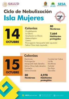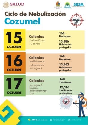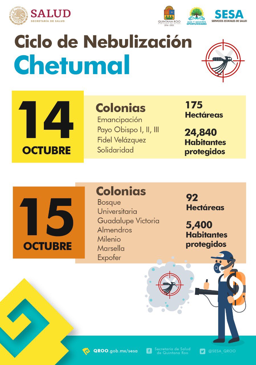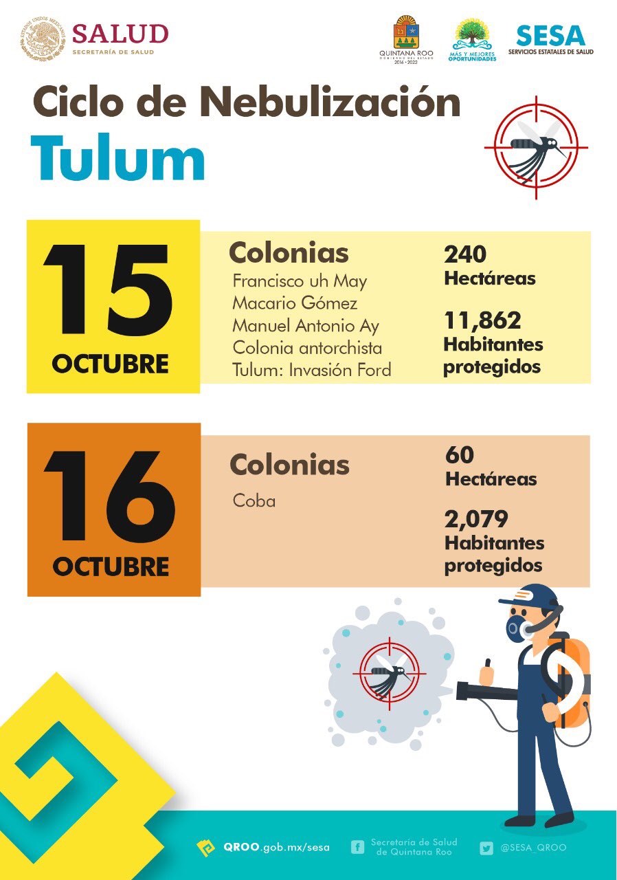 La Secretaría estatal de Salud anunció que del 14 al 18 de octubre se realizará el décimo ciclo de nebulización en Cancún, para después seguir en los demás municipios de Quintana Roo.