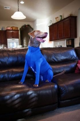El traje promete mantener el pelo de tu mascota en control. Además sustituye el cono médico, pues recubre zonas delicadas, previene la comezón y alivia condiciones de la piel.