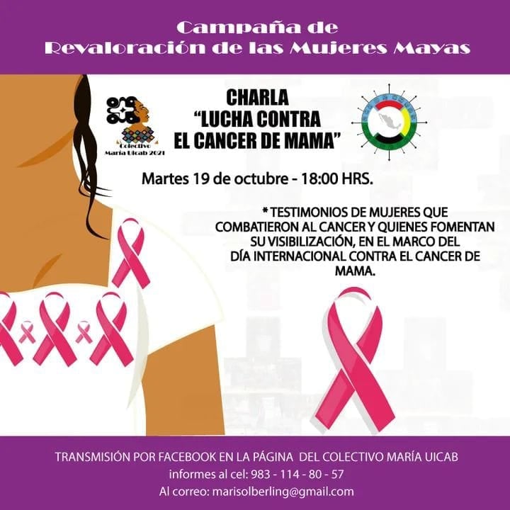 Con motivo del Día de la Lucha contra el Cáncer de Mama la Asamblea Nacional Indígena Plural por la Autonomía (ANIPA) Quintana Roo y el Colectivo María Uicab realizaron de manera conjunta un conversatorio virtual sobre este tema que suele ser tabú en las comunidades mayas al grado de no quererse ni pronunciar el nombre.