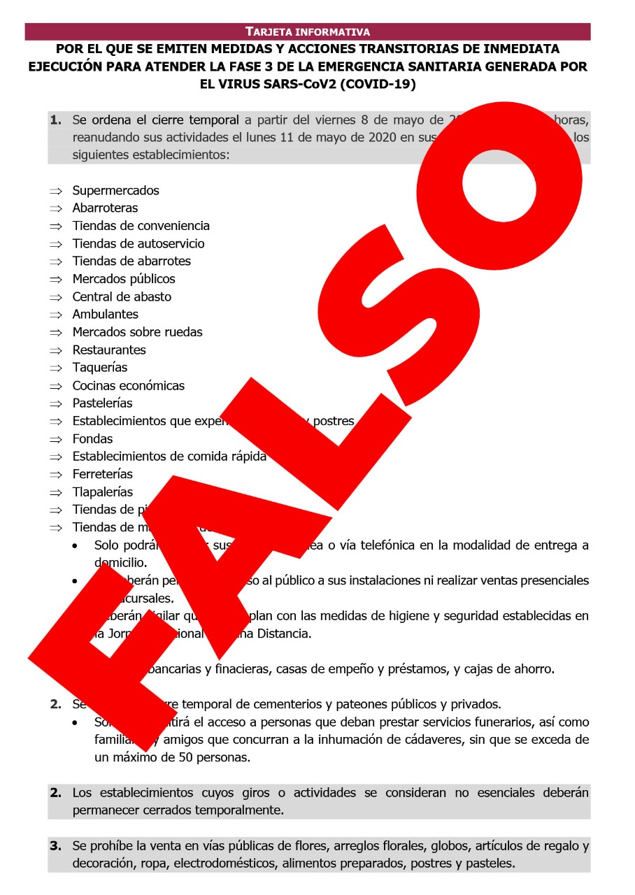 A través de las redes sociales está circulando una”tarjeta informativa” en la que se informa a la población sobre el reanudo de actividades de manera controlada para establecimientos como supermercados, tiendas de abarrotes, mercados públicos y demás establecimientos.