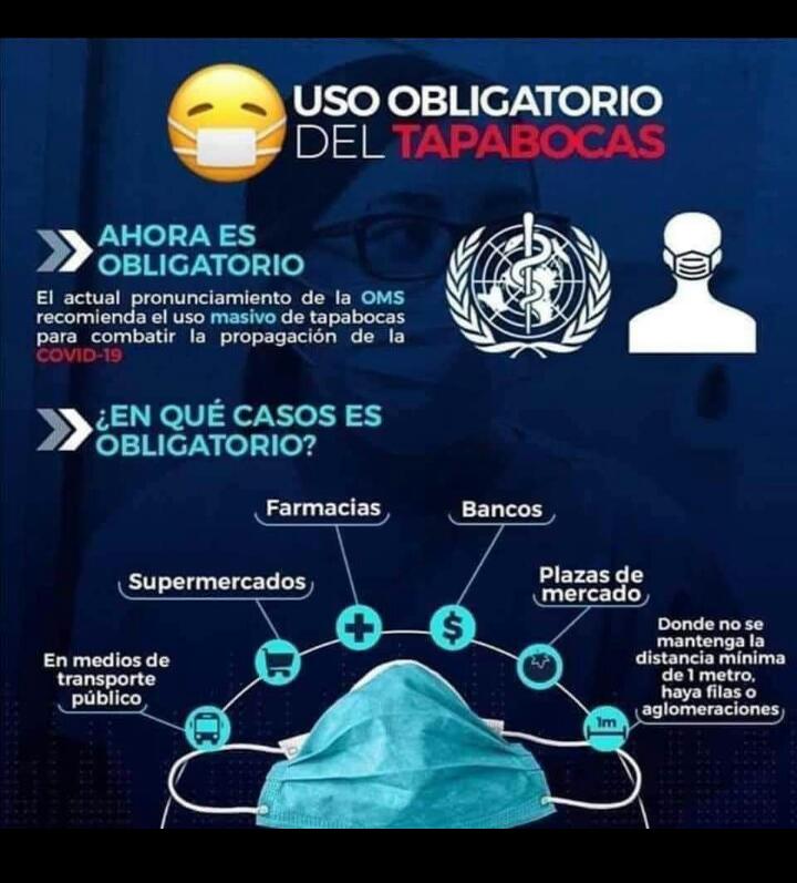 Hasta ahora la Organización ha señalado que el uso del cubrebocas es obligatorio en ciertos casos, como por ejemplo: en el transporte público, supermercados, farmacias, bancos, mercados y en la filas.