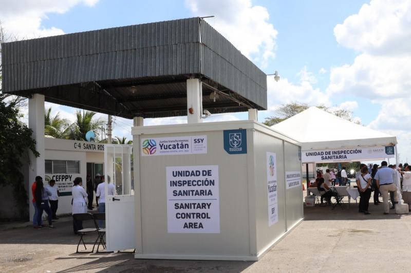Acompañado por alcalde de Peto, Edgar Calderón Sosa y el titular de la Secretaría de Salud del estado (SSY), Mauricio Sauri Vivas, Vila Dosal constató los procesos de verificación e inspección que realiza el personal de salud, con apoyo de elementos de la Secretaría de Seguridad Pública (SSP), en el punto establecido en la comunidad de Santa Rosa de este municipio, en el límite territorial con el sur de Quintana Roo.