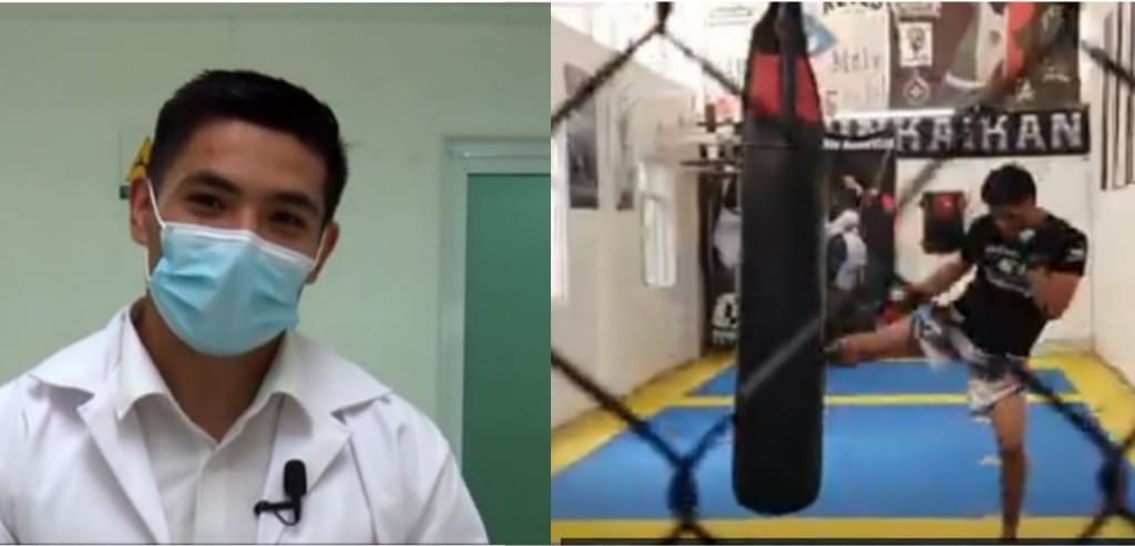 México.-Este jóven médico del IMSS también es todo un aguerrido campeón mundial de artes marciales y ha dedicado sus victorias al personal de saluid que combate todos los días al Covid-19.