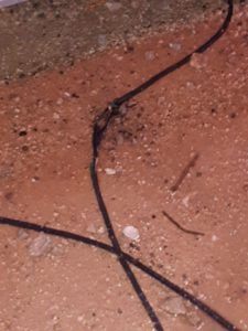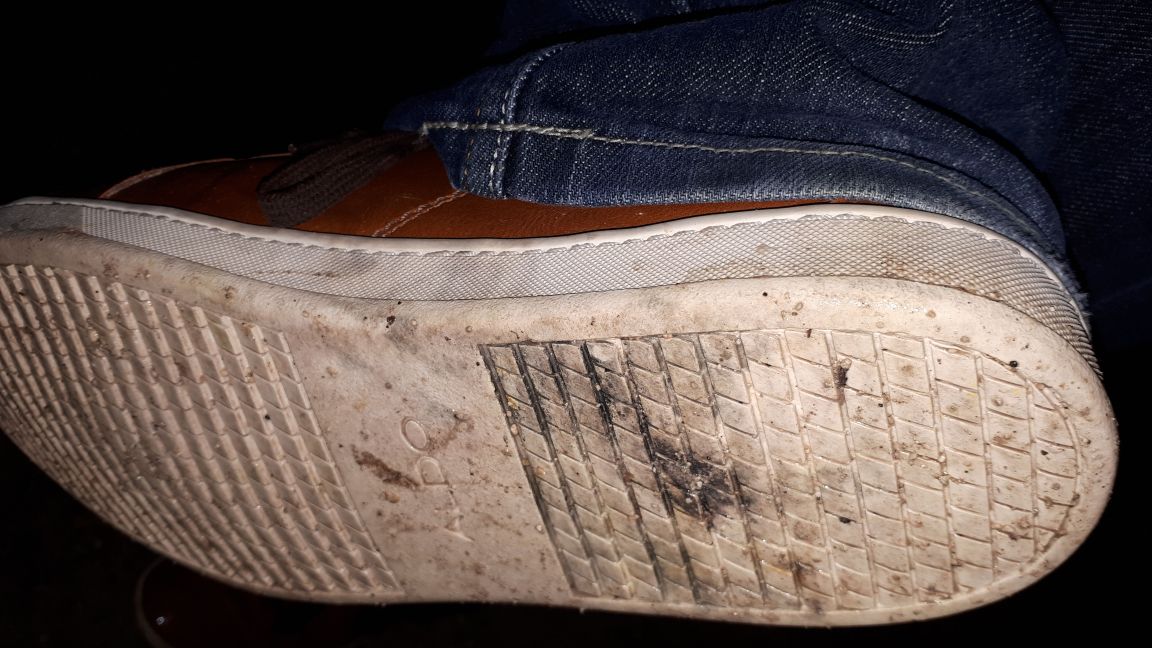 Un señor que pasaba alcanzó a tocarlo con el pie y sintió una descarga que provocó un fuerte dolor y vómito, quedando una huella de la descarga eléctrica la suela de su zapato.