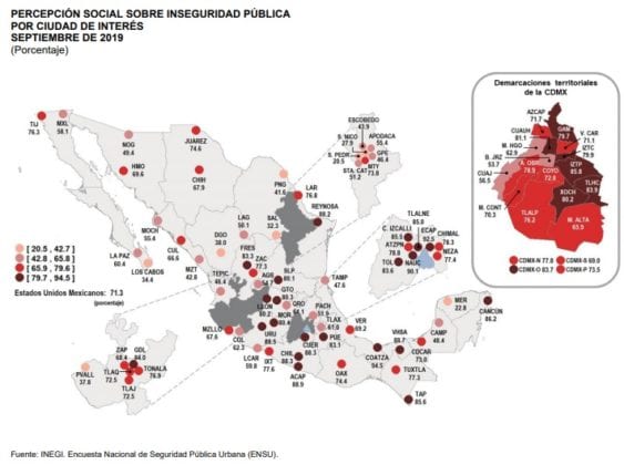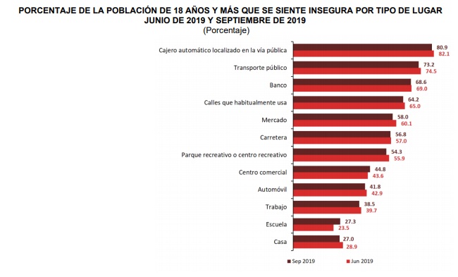 La encuesta se realizó entre personas mayores de 18 años de edad, residente de estas ciudades. A la pregunta si consideran que vivir en su ciudad es inseguro, un 86.2% contestó en sentido afirmativo. Esto es un descenso de 2.6% en comparación al último estudio, en junio, y una reducción de un 6.6% en comparación con septiembre de 2018, cuando este índice se ubicaba en un 92.8%.
