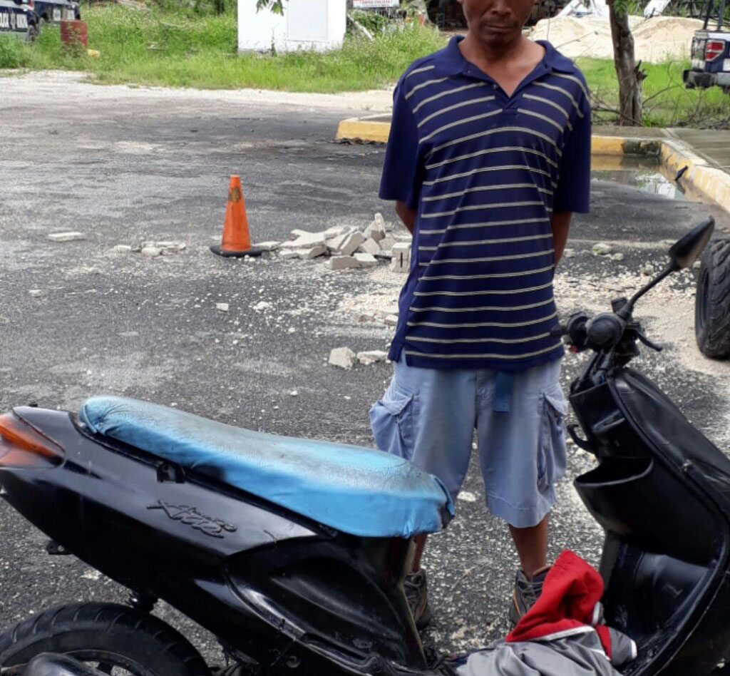 El sujeto fue visto por los agentes sobre el bulevar Playa del Carmen con calle 66 de la colonia Fundadores, mientras empujaba una motocicleta Yamaha con placas sobrepuestas, lo que consideraron sospechoso.