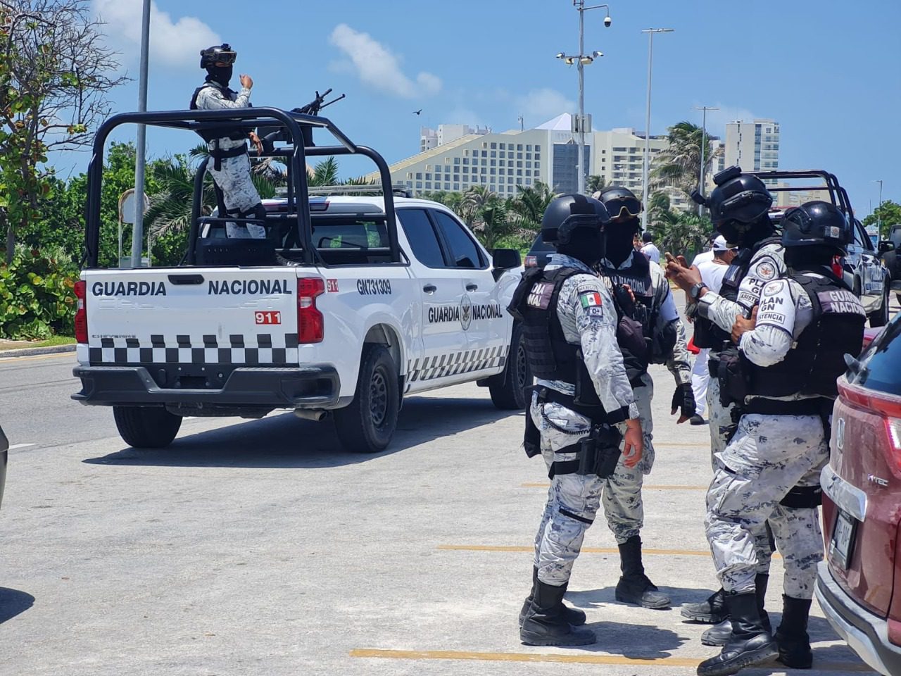 Mientras efectivos castrenses y policiacos arribaban por el bulevar Kukulcán, dos embarcaciones de la Marina llegaron por mar, para cerrarles el paso a quienes pretendieran escapar con motos acuáticas.