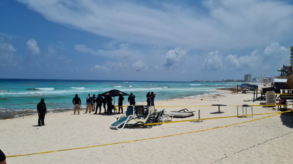 Cancún.- Autoridades de los tres niveles de gobierno intervinieron hoy en Playa Delfines, deteniendo a siete personas con armas y drogas, además de asegurar diversos camastros, motos acuáticas y una palapa en la que vendían bebidas alcohólicas.