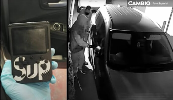 Primero, se acercan dos sujetos al coche estacionado y revisan que no haya nadie cerca. De pronto, uno de ellos saca de su bolsillo lo que parece ser un Nintendo Game Boy, una consola de videojuegos portátil de hace algunos años, y, como por arte de magia, el coche se desbloquea por completo.