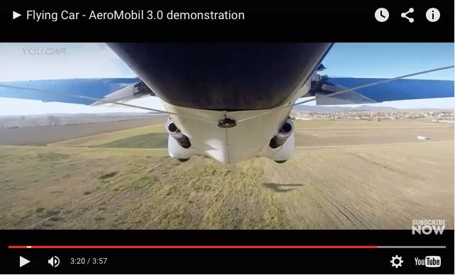 Aquí tenemos un video ya del Aeromobil 3.0, el cual es un carro que se transforma en un avión. En unos cuantos minutos despliega sus alas y pone a funcionar su motor para estar en aptitud de volar. No requiere de una pista especial para despegar y para aterrizar pues puede hacer ambas maniobras en un campo abierto.