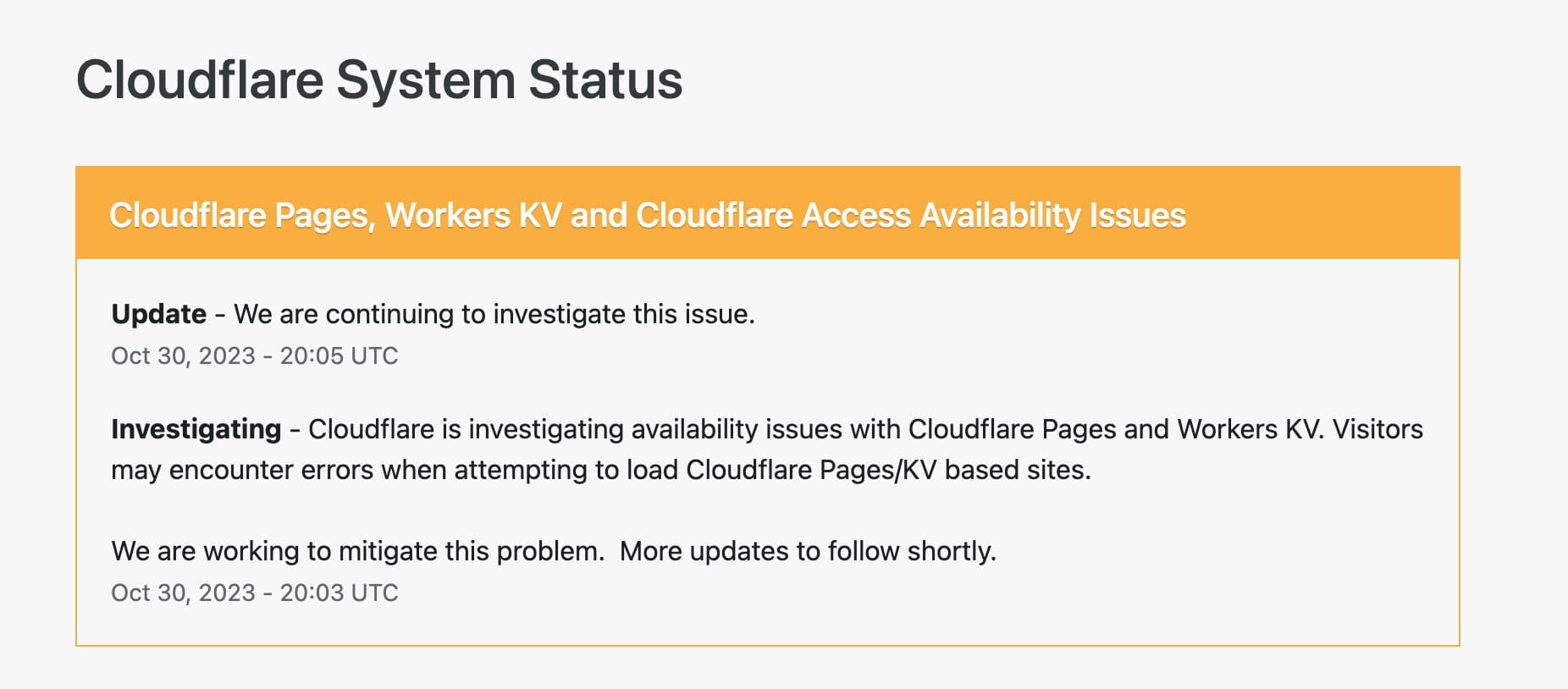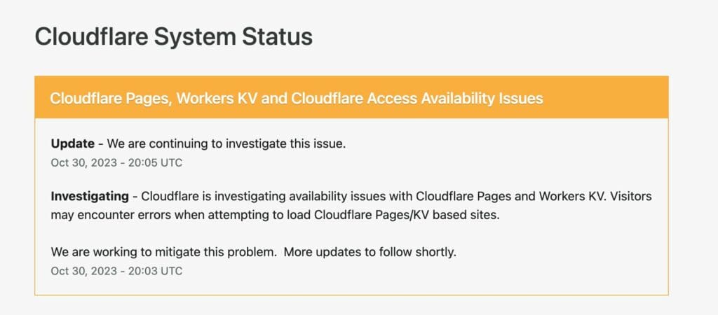 Cloudflare ha informado a través de su web www.cloudflarestatus.com, que decenas de sitios web estaban totalmente inactivos y otros tenían intermitencia.