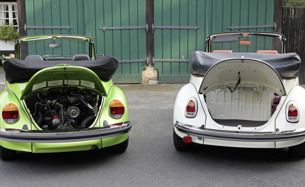 El auto podría sustituir su motor de cuatro cilindros por uno basado en refrigeración de por aire, en las primeras fotos publicadas por sitios especializados resalta el hecho de que el nuevo “electro Vocho” no trae motor en la parte trasera.