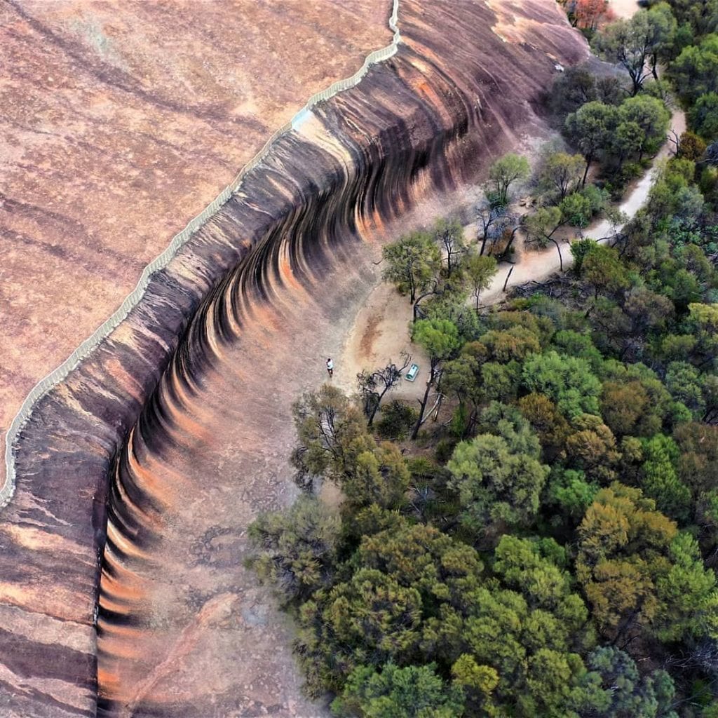 Se trata de Wave Rock, ubicada en Hyden, en la provincia de Western Australia, a unas tres horas en auto de la ciudad de Perth, la más importante en el lado oeste del país y es una formación rocosa que se levanta hasta 15 metros de altura, y que se extiende a lo largo de 110 metros, con la forma de una ola.