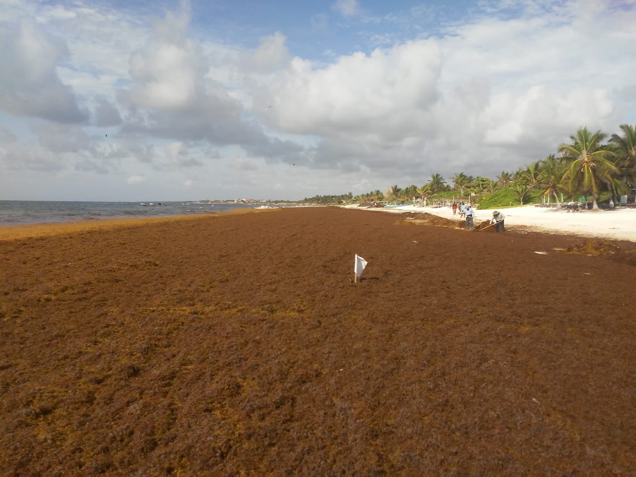 Este domingo, las playas públicas de Tulum lucen con una enorme alfombra de esta macroalga, impidiendo que bañistas pudieran sumergirse en las aguas caribeñas.