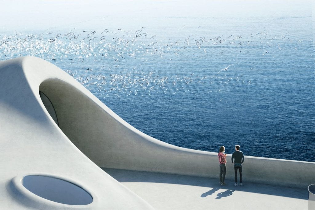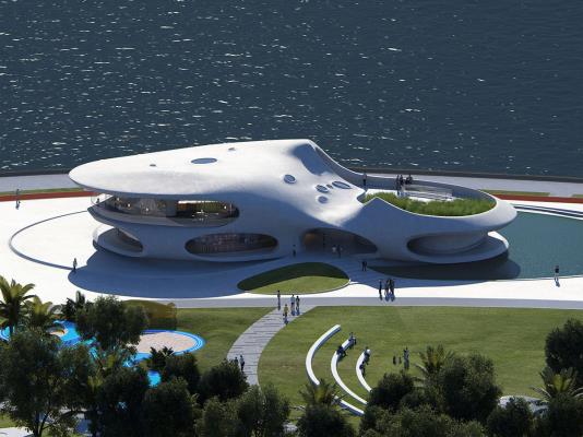 Este proyecto nuevo e innovador es semejante a una extraña estructura alienígena situada junto al mar y su diseño busca que los visitantes escapen del bullicio diario y sueñen con viajar a otros mundos y tiempos dentro de un lugar multipropósito debido a las características de su arquitectura.
