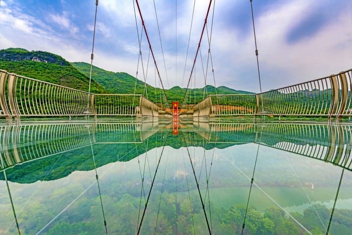 Este nuevo puente se encuentra a 201 metros de altura, pisos de vidrio y 526 metros de largo, es considerado hasta el momento el más largo del mundo. ¿Te atreves a cruzarlo?