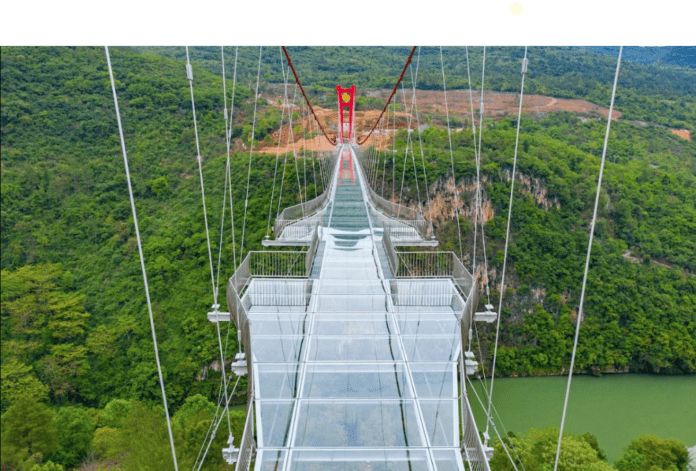 Se trata de una plataforma situada dentro de la provincia de Cantón, al sureste del país asiático, donde este increíble puente de cristal con 526 metros, fue construido sobre el río Lianjiang batió el récord Guinness como el más largo del mundo.