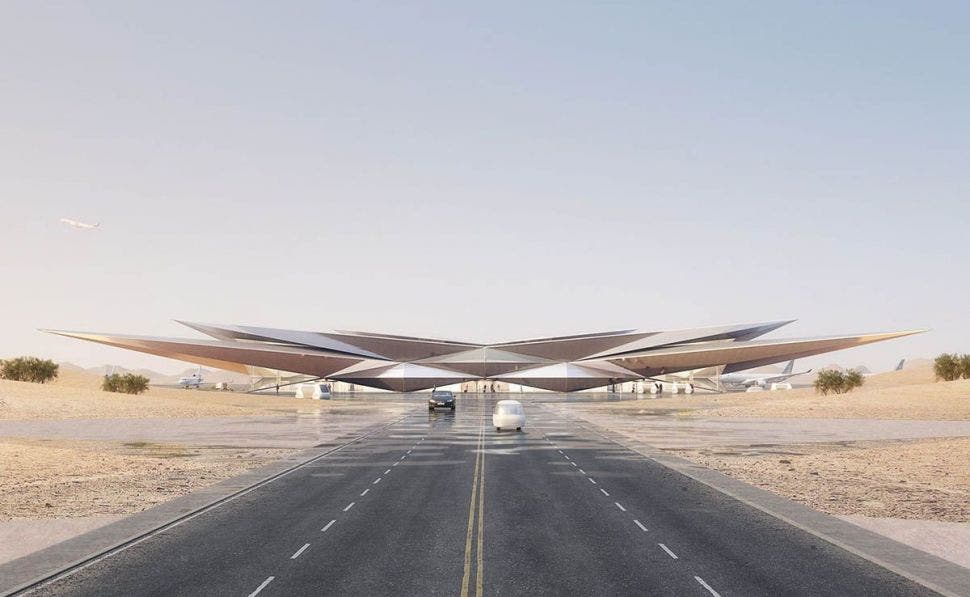 Pero en Arabia Saudita, país que tendrá un lujoso aeropuerto diseñado como un espejismo en medio del desierto, donde la nueva terminal, que todavía no se construye, se encontrará en la costa noroeste del país.