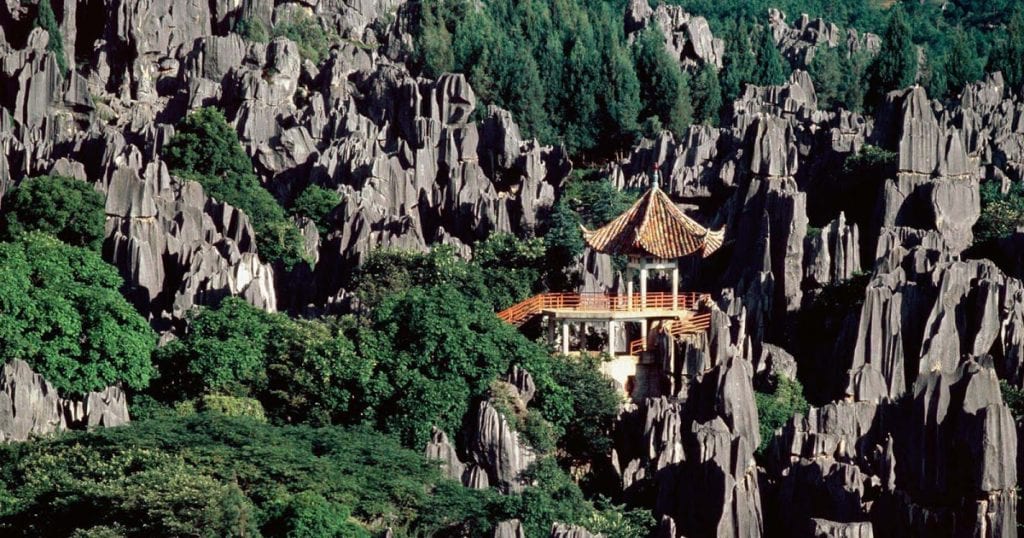 Se trata de El Bosque de Piedra o Bosque Shilin se encuentra precisamente en el condado autónomo de Shilin Yi, en la ciudad de Kunming, provincia china de Yunnan. Este destino está compuesto por montañas y rocas en forma de agujas y la erosión moldeó algunas formaciones geológicas parecidas a una silueta humana, a una espada, a un hongo, a una torre o a una columna.