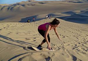 Para mayor comodidad contacta a algún tour operador que pueda darte una lección y con la tabla de sandboard ya incluida.