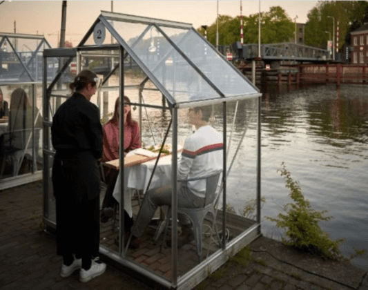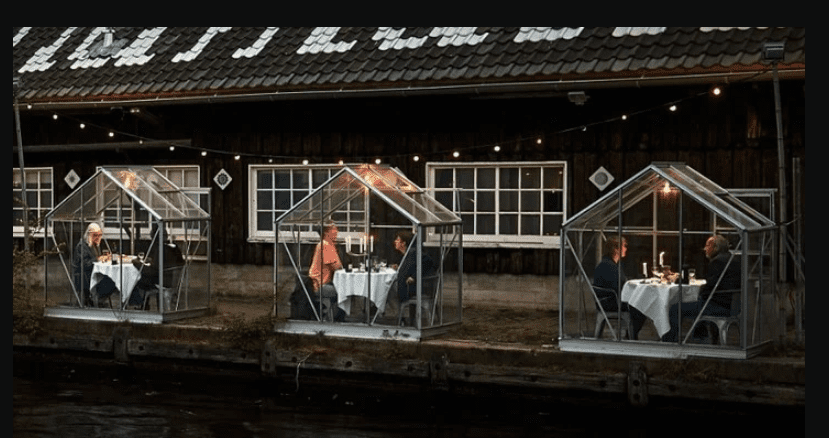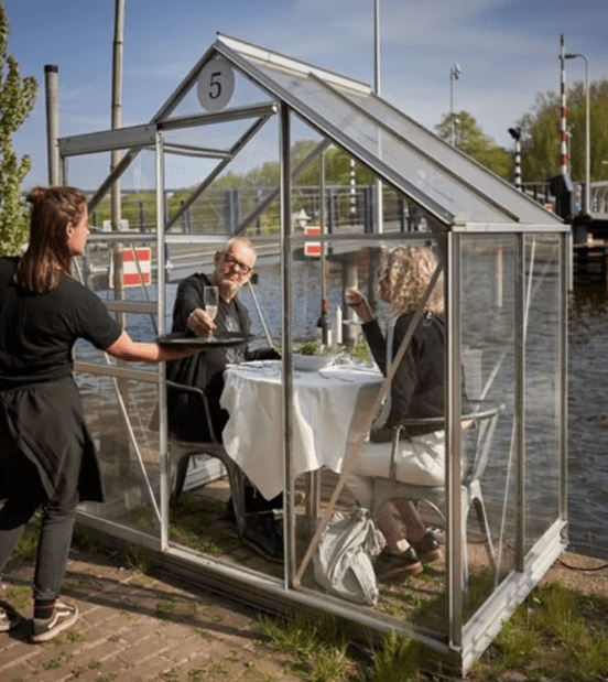 Un centro cultural de Amsterdam tuvo la genial idea de utilizar pequeños invernaderos, generalmente dedicados a proyectos artísticos, para ofrecer a los clientes de su restaurante un “comedor privado”, acorde con las restricciones debidas a la pandemia.