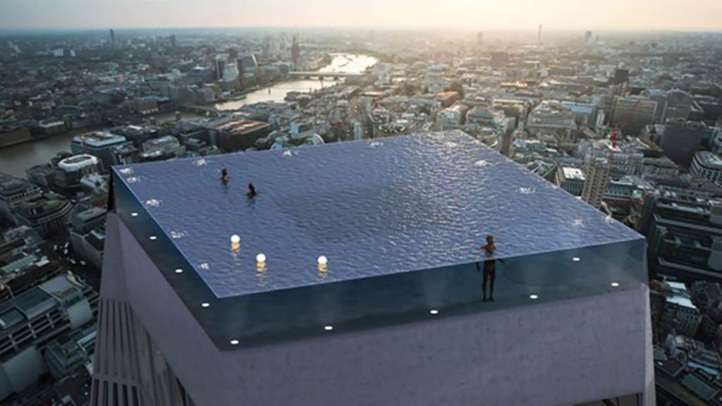 Dicha piscina contendrá 600 mil litros en un edificio de 55 pisos, llamado Infinity London, y de acuerdo con los diseñadores el concepto es el primero en el mundo y describe la estructura como “el único edificio del mundo que incorpora una piscina infinita de 360 grados”.