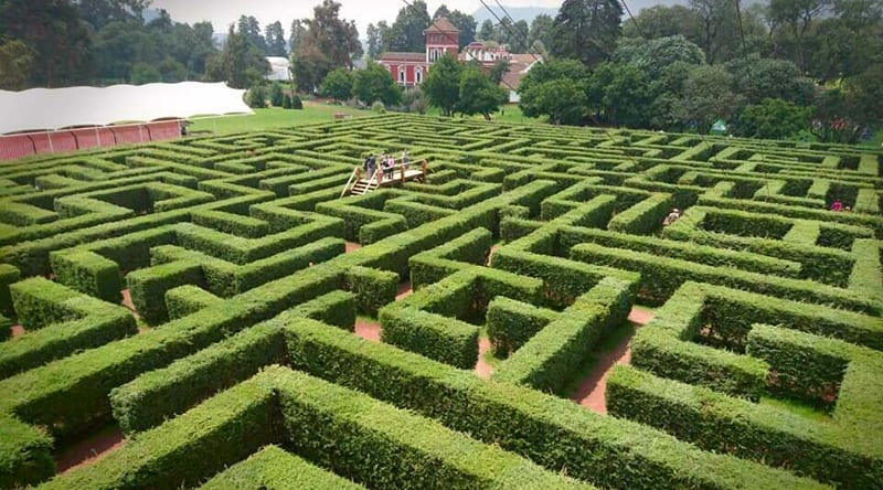 Alrededor de 60 hectáreas y 2000 metros de camino acoge este hermoso sitio ubicado en Amecameca, Estado de México, muy cerca del Popocatépetl e Iztaccíhuatl. Su diseño es similar al de los laberintos que se construían en Inglaterra.
