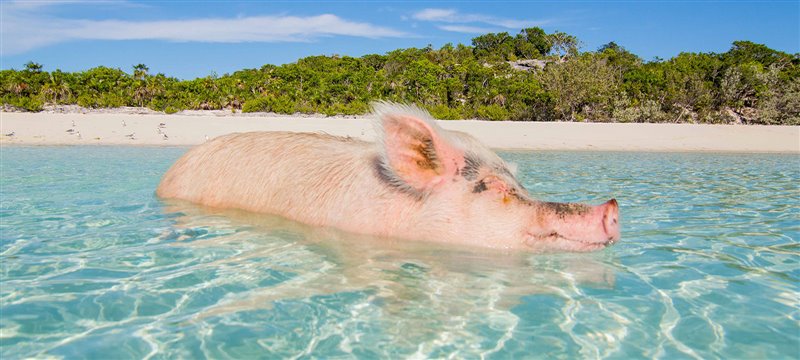 No se sabe cuál es cierta, pero, es verdad que los cerdos viven en la playa y que se alimentan gracias a los turistas que no paran de llegar a la búsqueda del selfie perfecto con uno de estos cerdos.