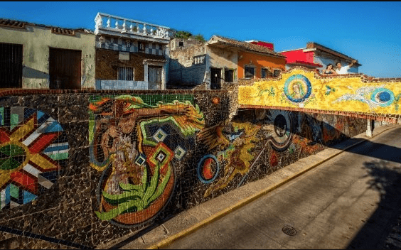 Aquí encontrarás el mural pintado por José Luis Soto, elaborado con cerámica, obsidiana,