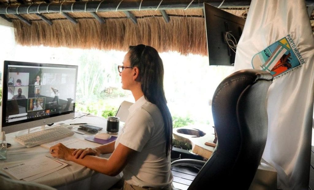 Puerto Morelos, Quintana Roo, 12 de mayo de 2020.- La presidenta municipal Laura Fernández Piña participó hoy en una reunión, por medio de videoconferencia, encabezada por el titular de la Secretaría federal de Turismo (Sectur), Miguel Torruco Marqués, para continuar con los trabajos de diseño de la estrategia nacional para la reactivación del turismo en México.