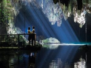 Durante millones de años, el agua de las lluvias se filtra al subsuelo, formando sistemas de ríos y pozas subterráneas, mejor conocidas como cenotes, considerados por los antiguos mayas como lugares sagrados por ser portales hacia el inframundo.