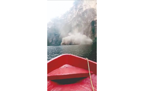 Este miércoles turistas nacionales y extranjeros que iban a bordo de una lancha sobre el río Grijalva fueron testigos del deslizamiento registrado en una de las paredes del Cañón del Sumidero, lo que alarmó a operadores turísticos.