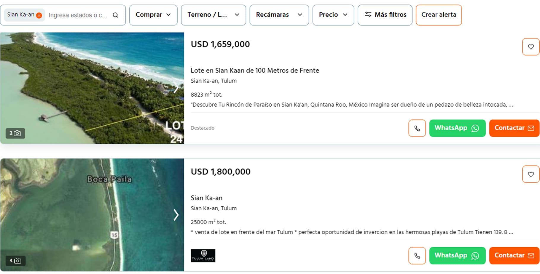 En prácticamente todas las páginas de inmobiliarias serias se pueden encontrar decenas de terrenos a la venta, aunque los precios se cotizan en dólares y superan el millón de pesos mexicanos.