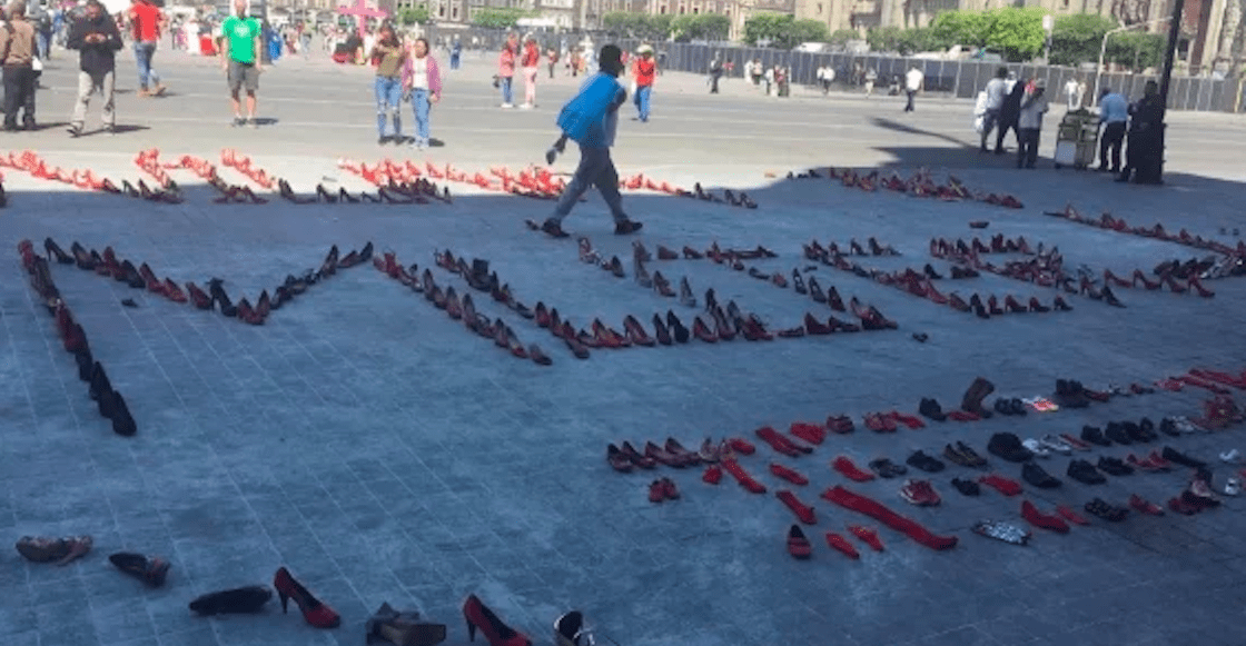 Las protestas continúan en el Zócalo capitalino, esta vez por medio de un performance realizado por un grupo de activistas en el que utilizando zapatillas y calcetas rojas formaron la frase “Ni una mujer +”, con lo que exigen un alto a los feminicidios y la violencia en contra de ellas.