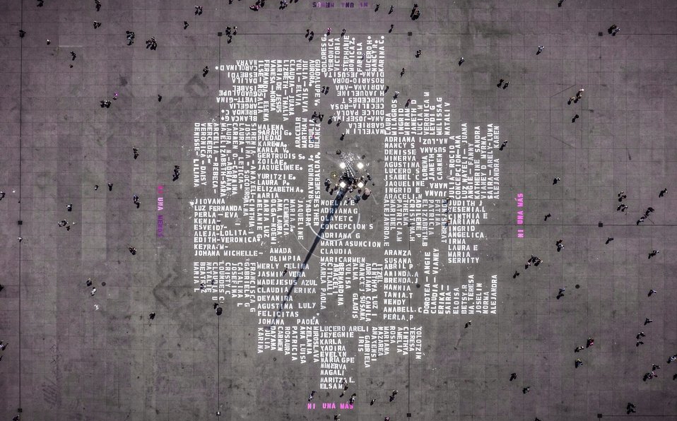 Ayer durante la marcha del 8 de marzo en el Zócalo, otro grupo de activistas denominado Colectiva de Amigas Activas, escribieron en la Plaza de la Constitución los nombres de todas las mujeres que han sido asesinadas o desaparecidas en México.