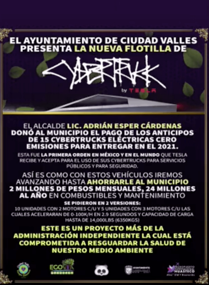 ¿De verdad Ciudad Valles necesita 15 unidades Cybertruck eléctricas cero emisiones para 2021?